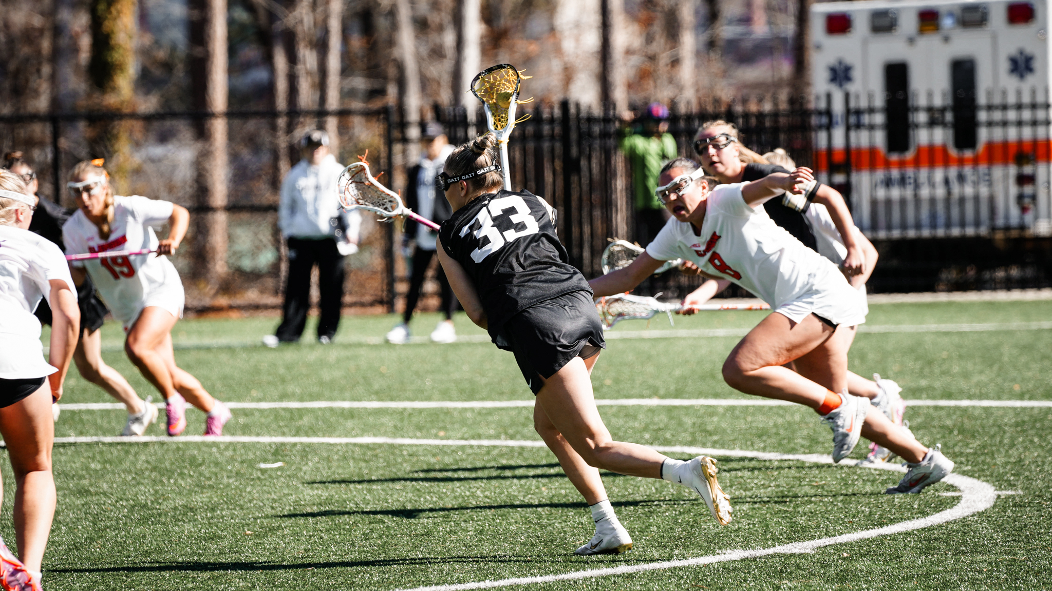 Junior captain Alex Gladding picked up three ground balls and caused three turnovers while freshman Gabby Putman won four draw controls. Bailey Lower also added three draws. In goal, Emme Martin made five stops while Caelan Jones had two saves.