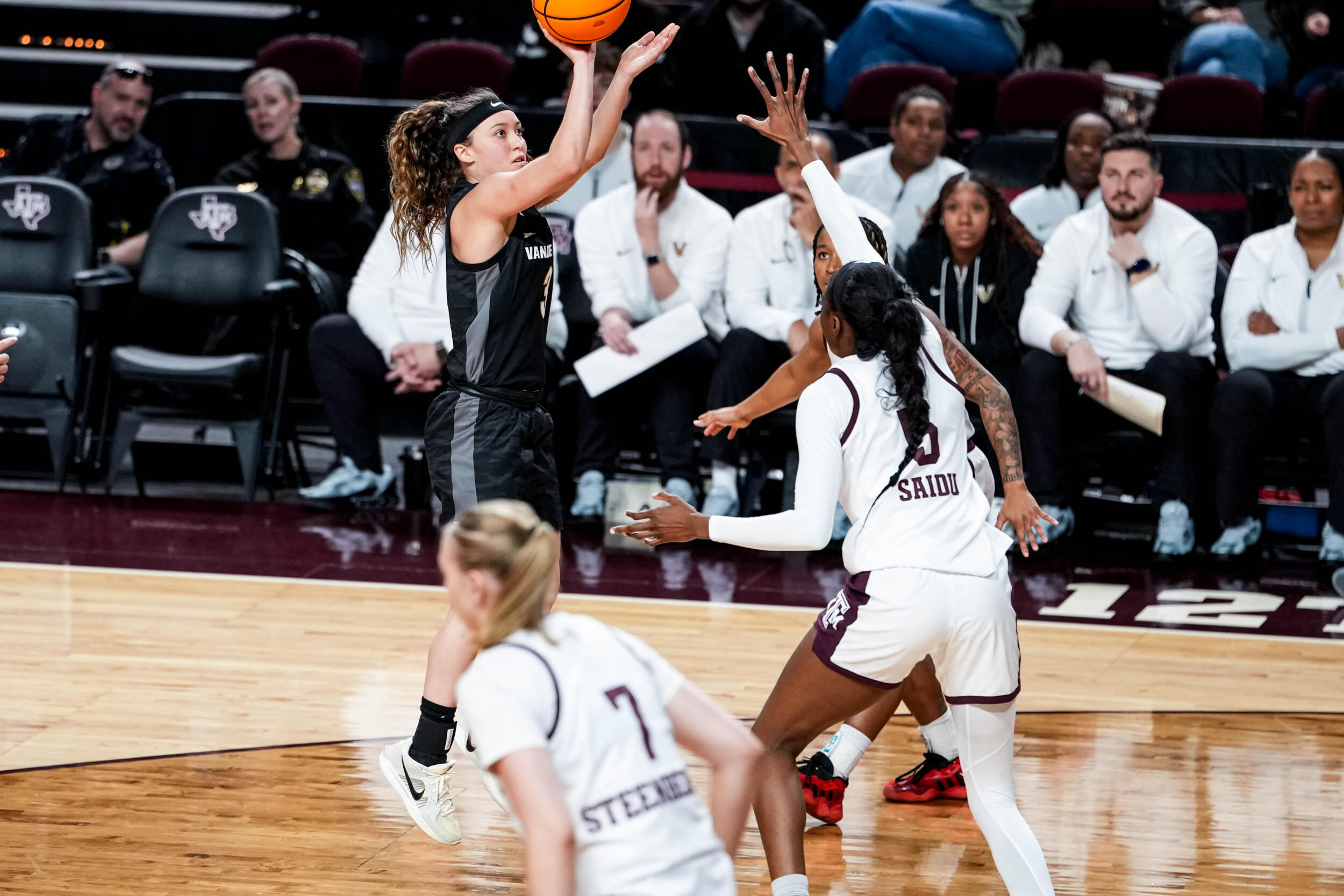 Vandy shot a blistering 56.6 percent from the field and hit 12 3-point field goals. The Dores forced Texas A&M into 23 turnovers, as Vanderbilt has collected 20 or more turnovers in each of its last six contests. The Dores held a 34-9 edge over the Aggies in points off turnovers.