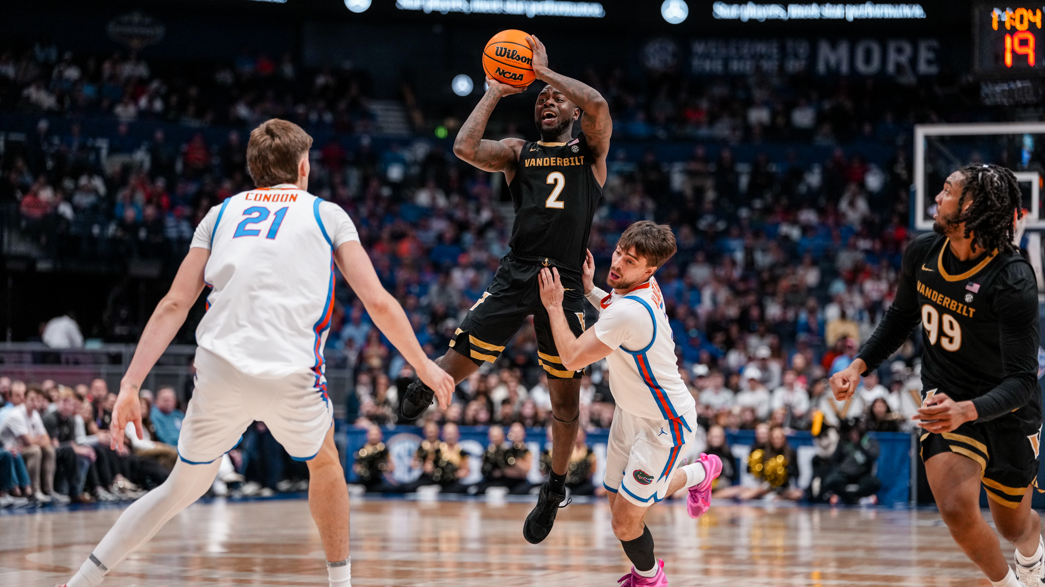 Using a balanced attack that saw five individuals score in double figures and two others finish with seven points, the No. 4 seed, 22nd-ranked Commodores defeated top-seeded No. 4 Florida 91-74 at Bridgestone Arena Saturday. Vandy will face the winner of the other semifinal featuring Arkansas and Ole Miss in its first appearance in the championship game since defeating Kentucky to claim the crown in 2012 Sunday at noon.