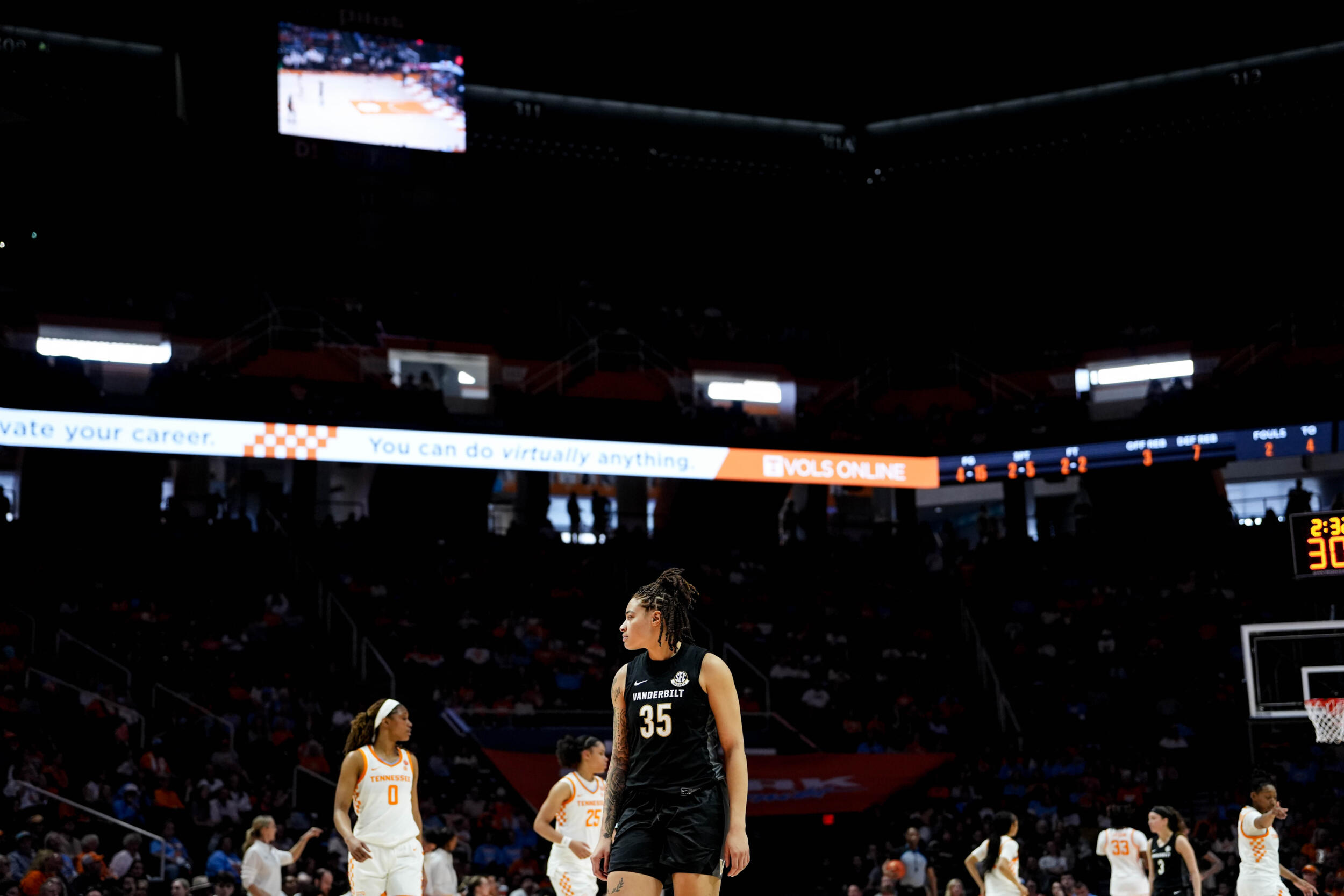 After going into the locker room trailing by six points, the Commodores came out of the break and doubled up on the Lady Vols in the third quarter, outscoring Tennessee 30-15 to take a nine-point advantage into the fourth. Vandy maintained a double-digit lead for nearly the entire fourth quarter, as the Commodores posted their second-ever victory at Tennessee.
