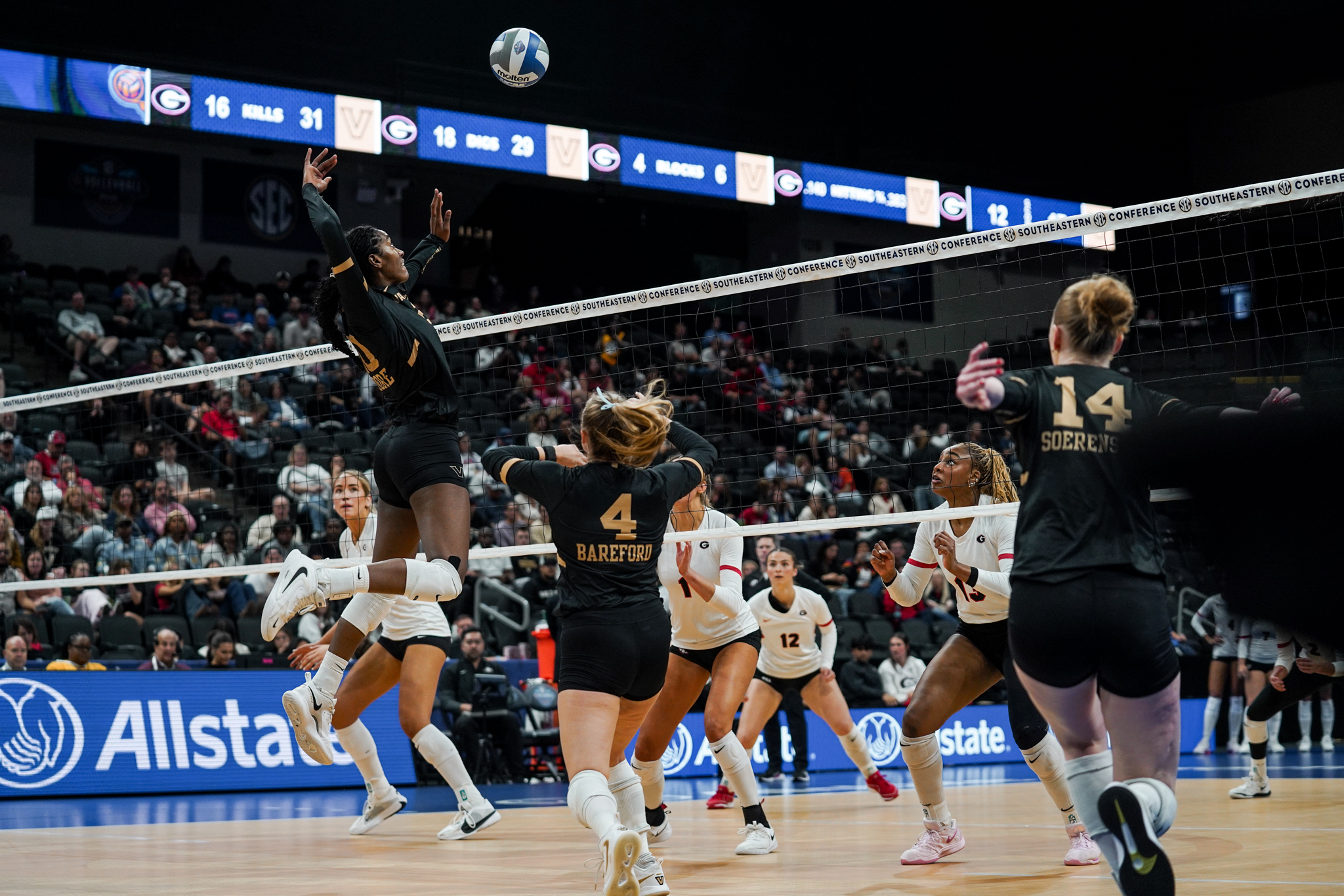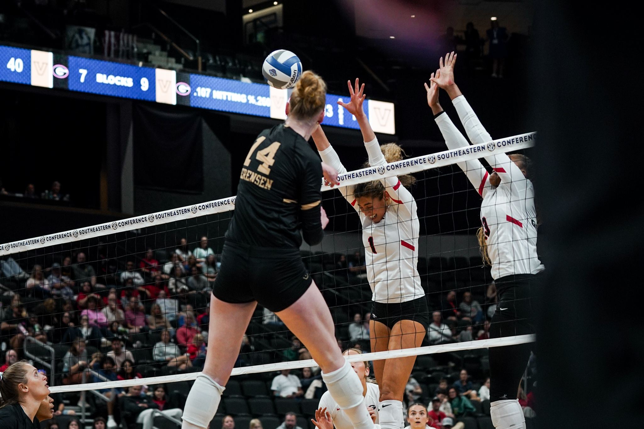 The Vandy defense limited Georgia to a hitting efficiency of .183. Two Bulldogs recorded double-digit kills. Bianna Muoneke led the way with 16 kills, followed by MK Patten with 10. Setters Kaya Tyson and Chloe Elarton combined for 41 assists with 19 and 13, respectively. Defensively, Adriana Rhoda, Kendal Kemp and Tori Harper each posted five blocks. Makenna Lim registered 15 digs for the Dawgs.