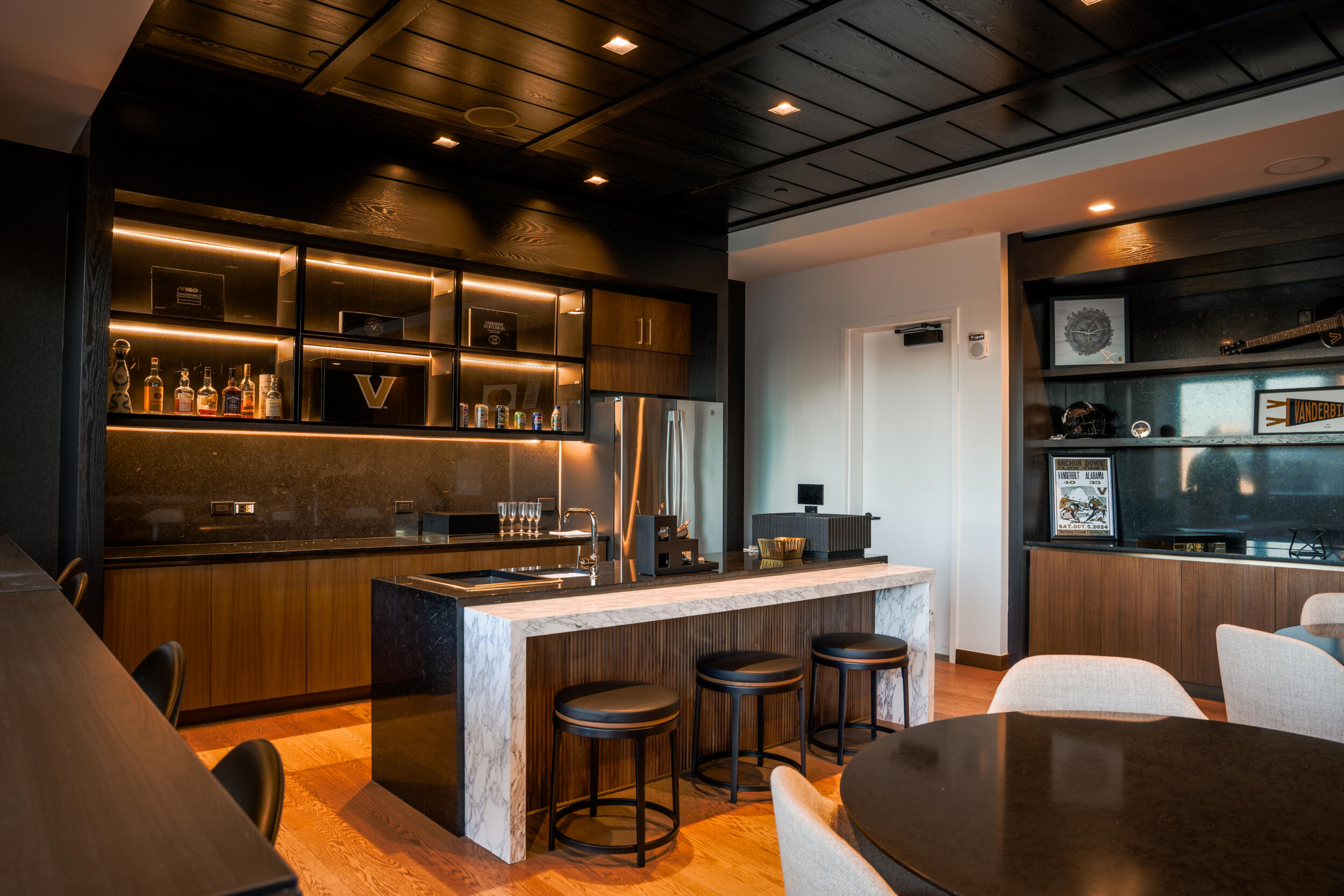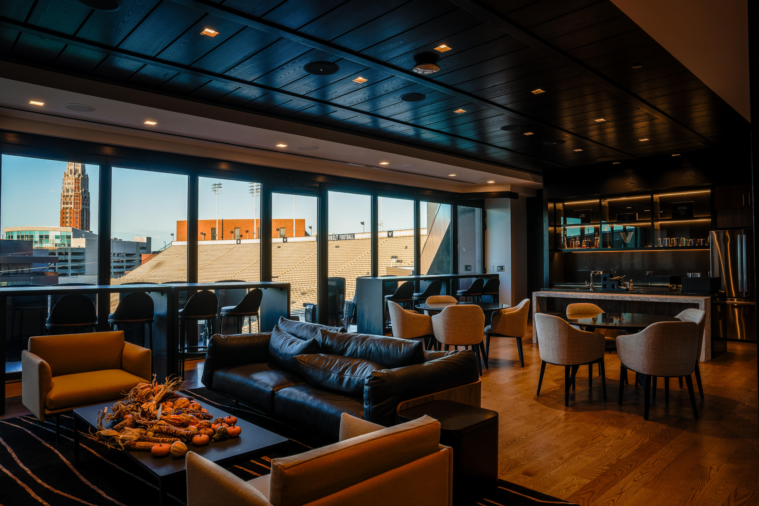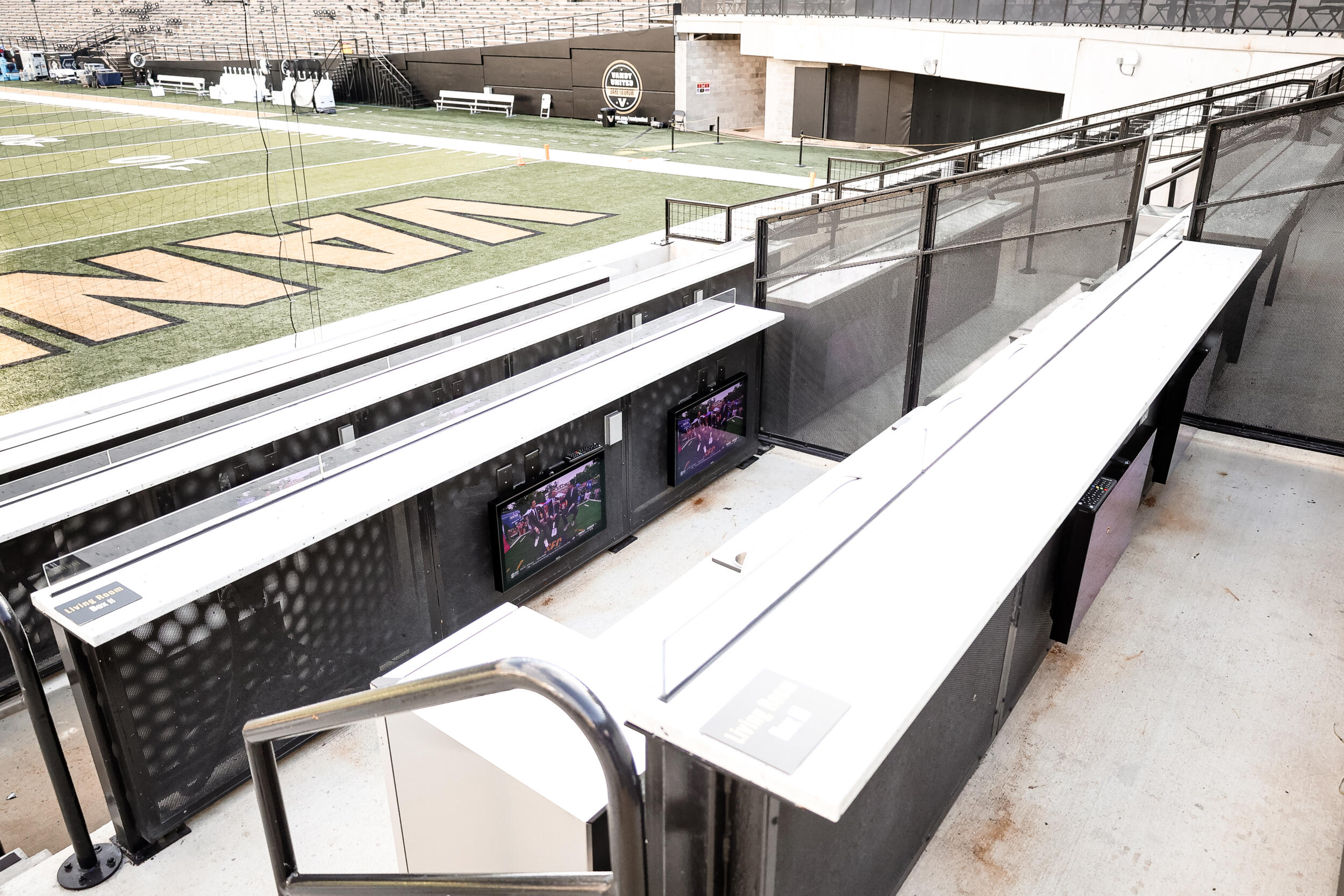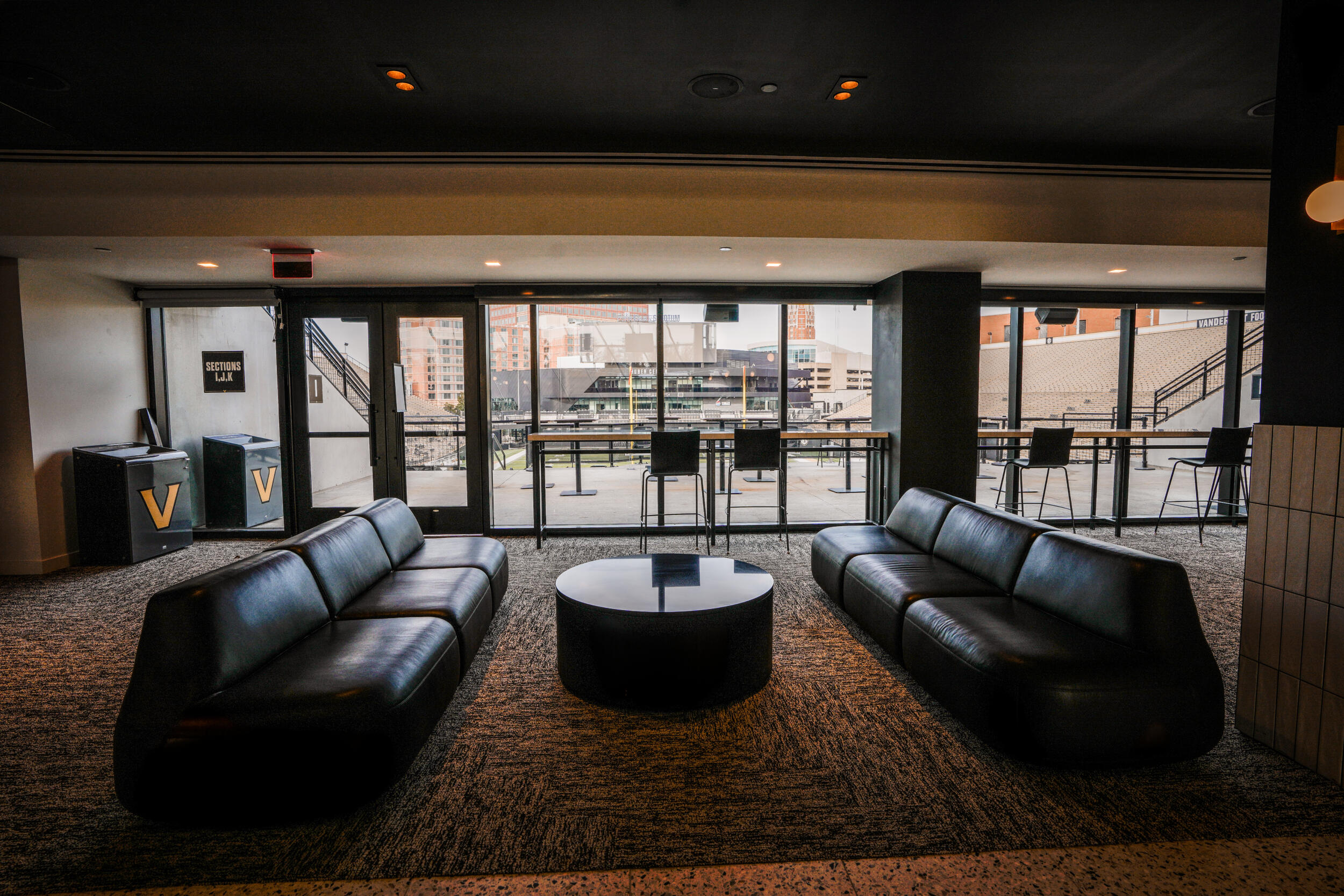The Commodore Suites epitomize the pinnacle of game day luxury at FirstBank Stadium. These large, exclusive and upscale suites are reserved for Vanderbilt’s most generous and devoted athletics supporters. Located at the top level of the south end zone, each Commodore Suite includes 16 padded outdoor seats and six bar stools, along with additional seating in the climate-controlled lounge.