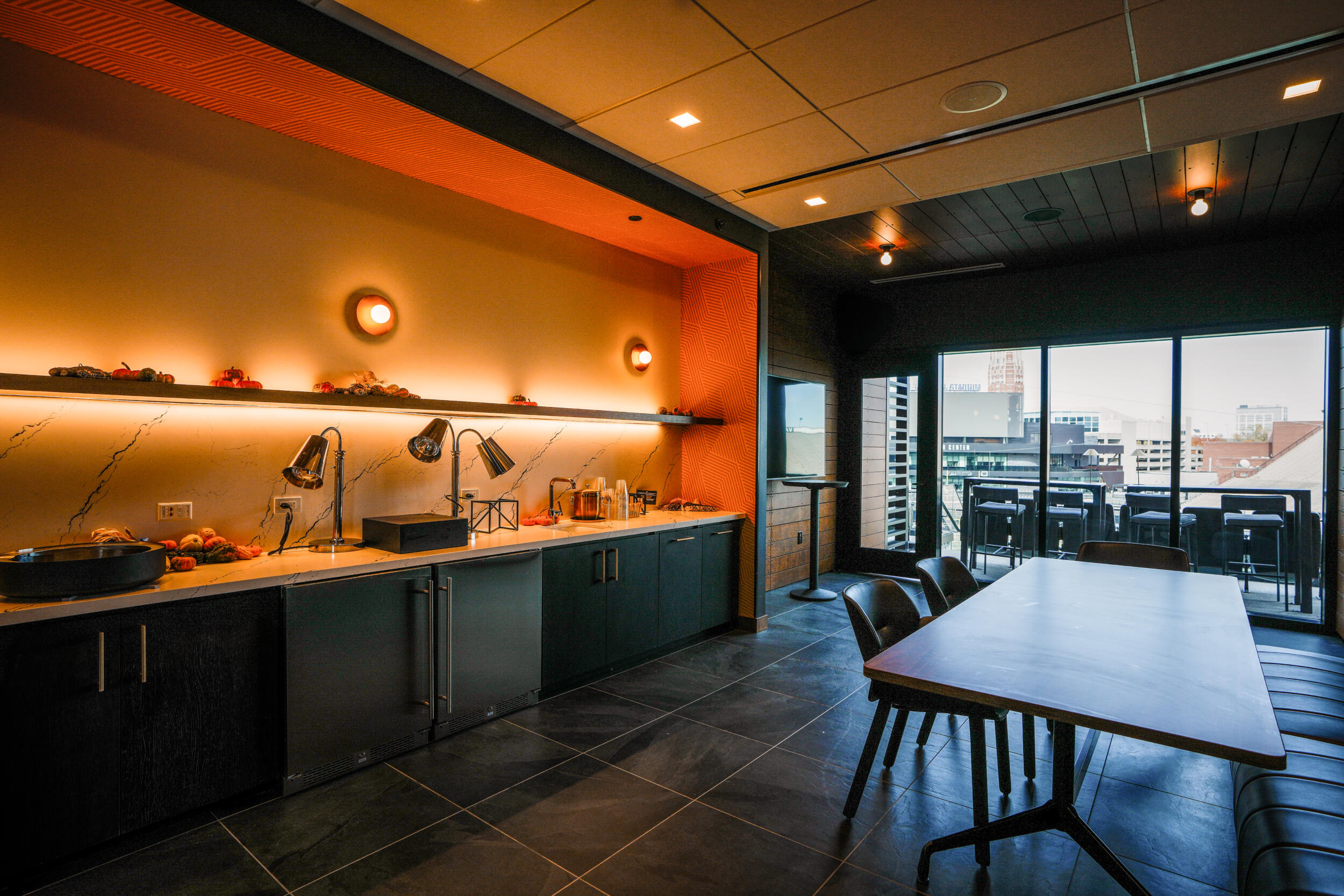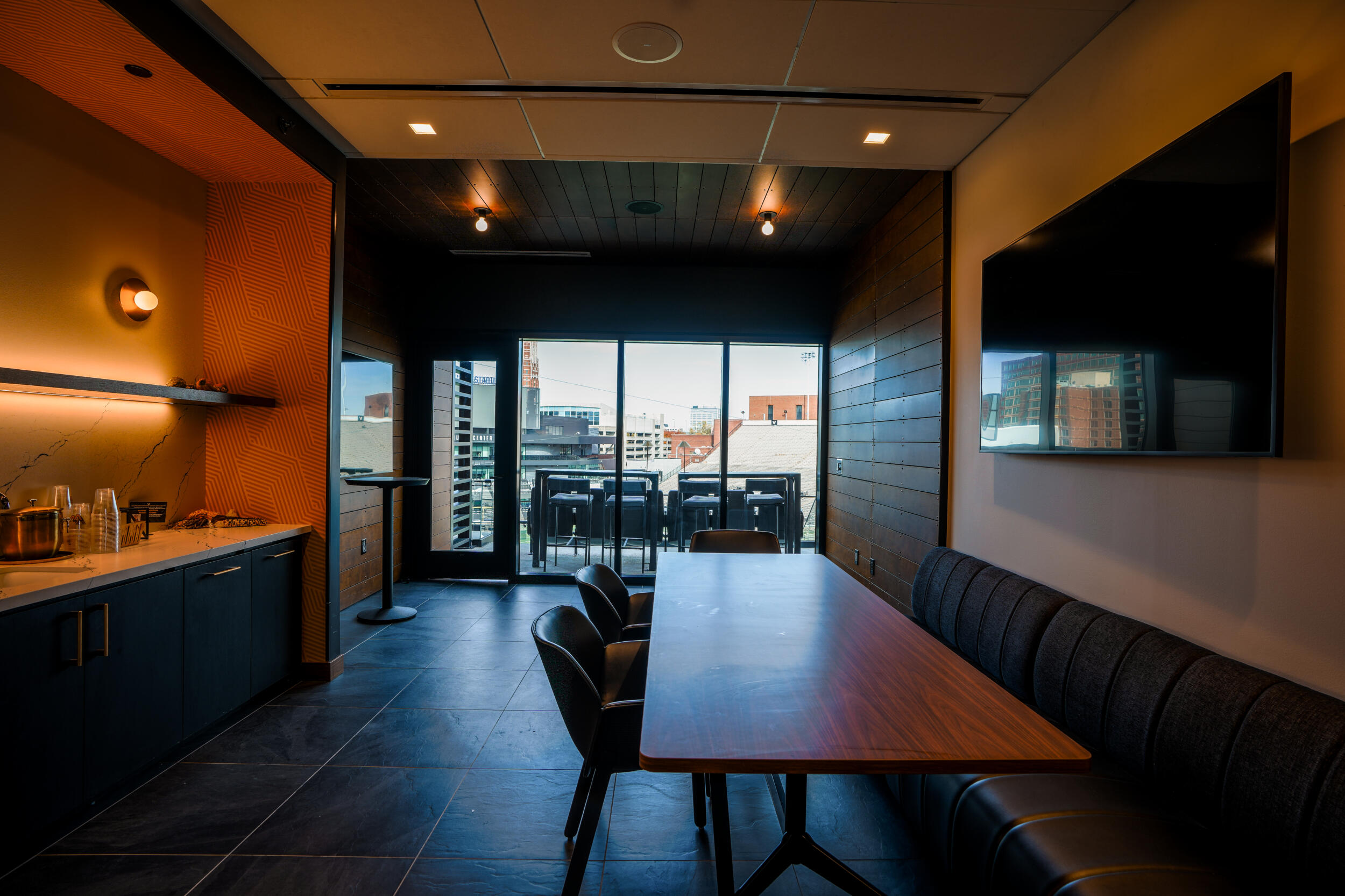 Access to outdoor club terrace, with views overlooking both FirstBank Stadium and Hawkins Field
