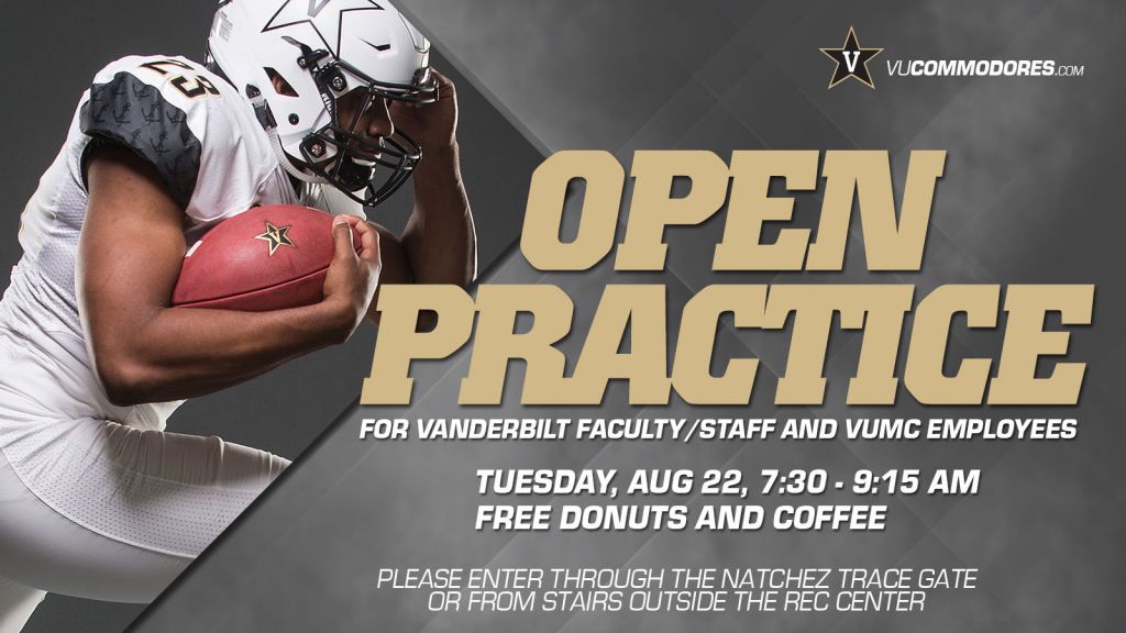 Vanderbilt football will host an open practice for university faculty, staff and Vanderbilt University Medical Center employees on Tuesday, Aug. 22.