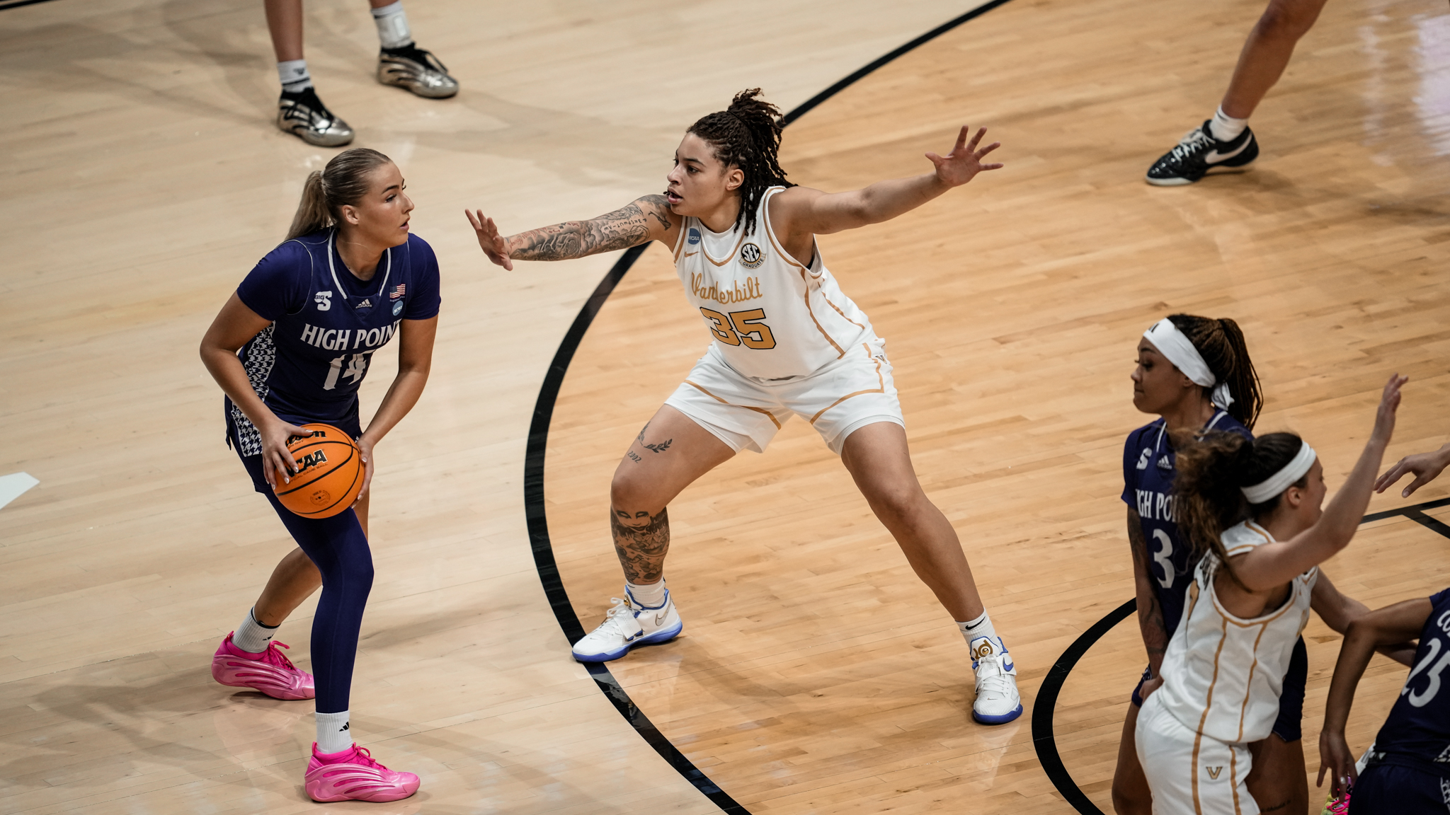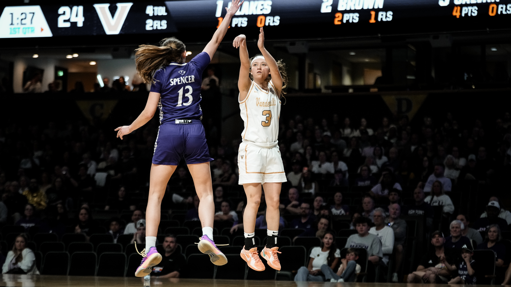 A total of five Commodores scored double-digit points against High Point. Freshmen Aubrey Galvan and Ava Black joined Blakes, Mwenentanda and Washington in the double-figure scoring column. Galvan registered 17 points and a team-high six assists to go along with a team-best four steals, while Black tallied a career-high 12 points off the bench.