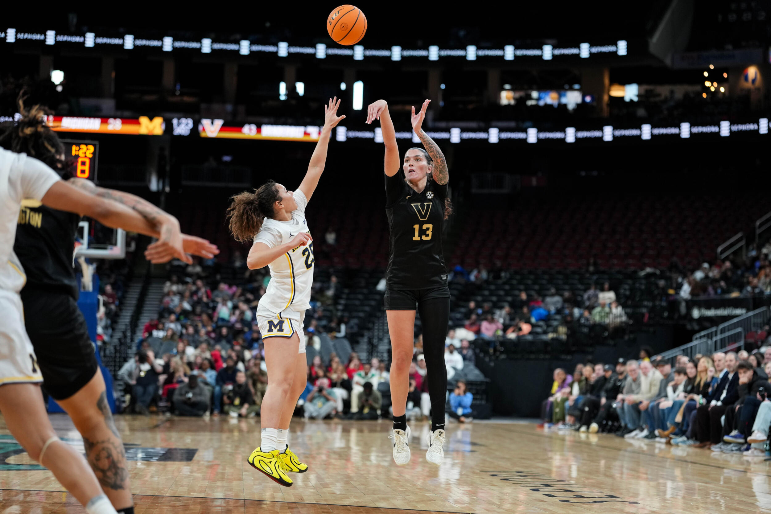 The Commodores broke the game open in the second quarter, as Vandy started the stanza by scoring 10-straight points that turned a six-point advantage into a 16-point lead. Michigan pulled within single digits late in the second frame, but the Dores used an 11-2 run before the half to take a 17-point lead into the break.