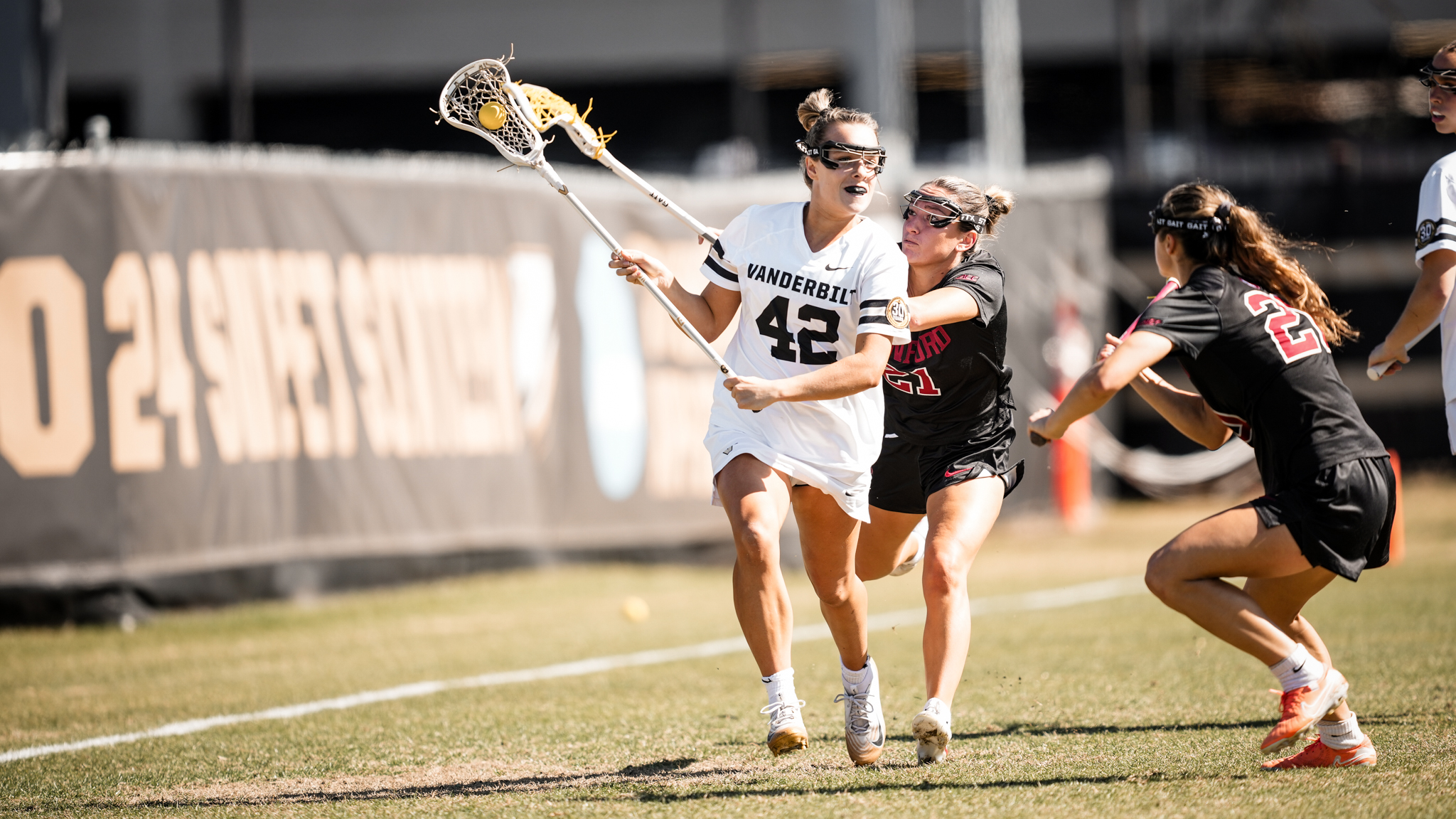 Vanderbilt (1-2) was led by Brooke Baker, who scored twice, while Anna Taraboletti, Gabby Putman, Molly Krestinski and Nancy Halleron each added a goal. Hayden Miller and Shea Panzik recorded an assist apiece. Taraboletti caused a career-high three turnovers, while Chloe Bethea-Jones added two for the Commodores. In goal, Emme Martin made eight saves.