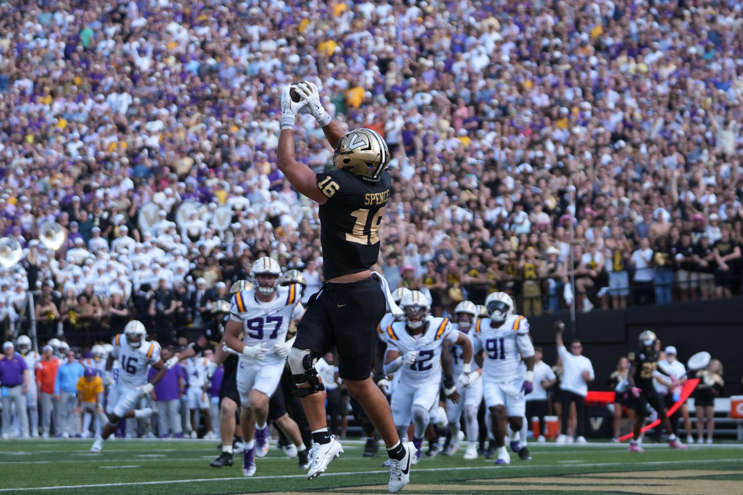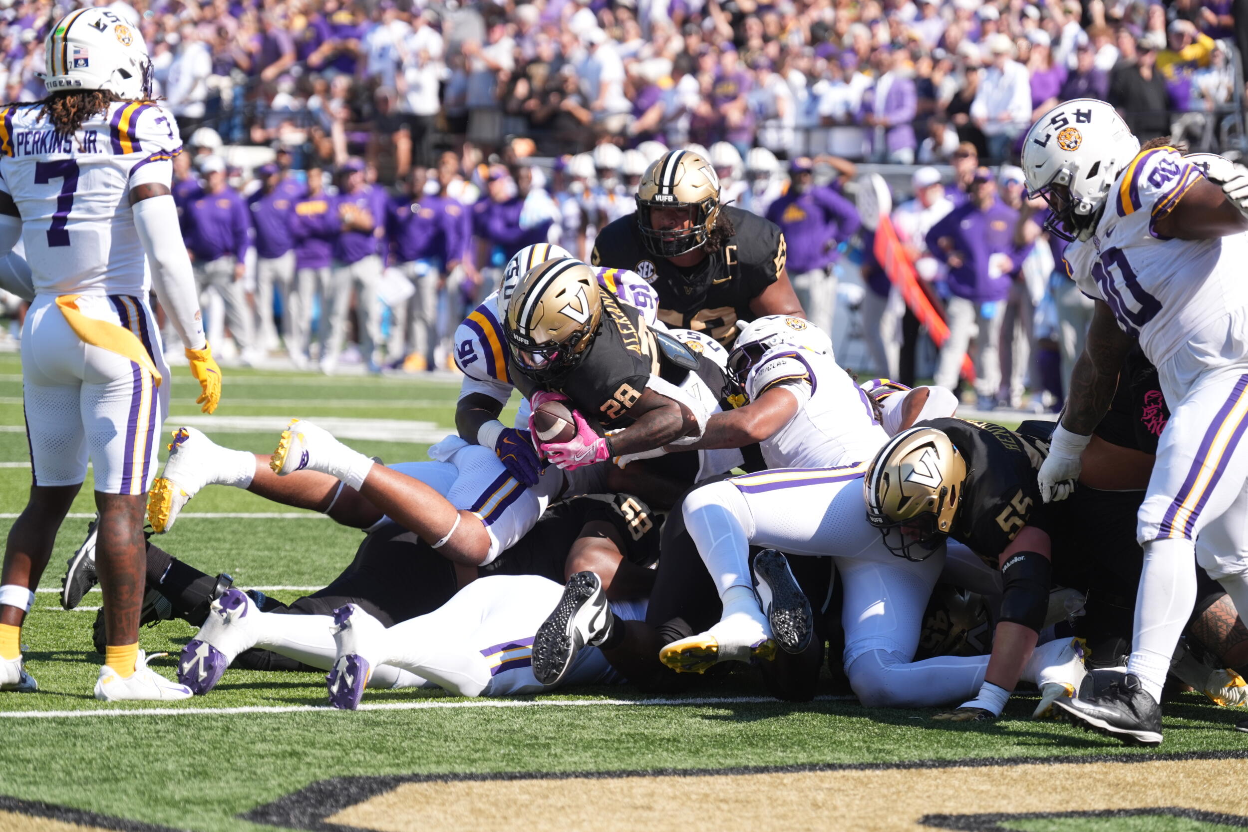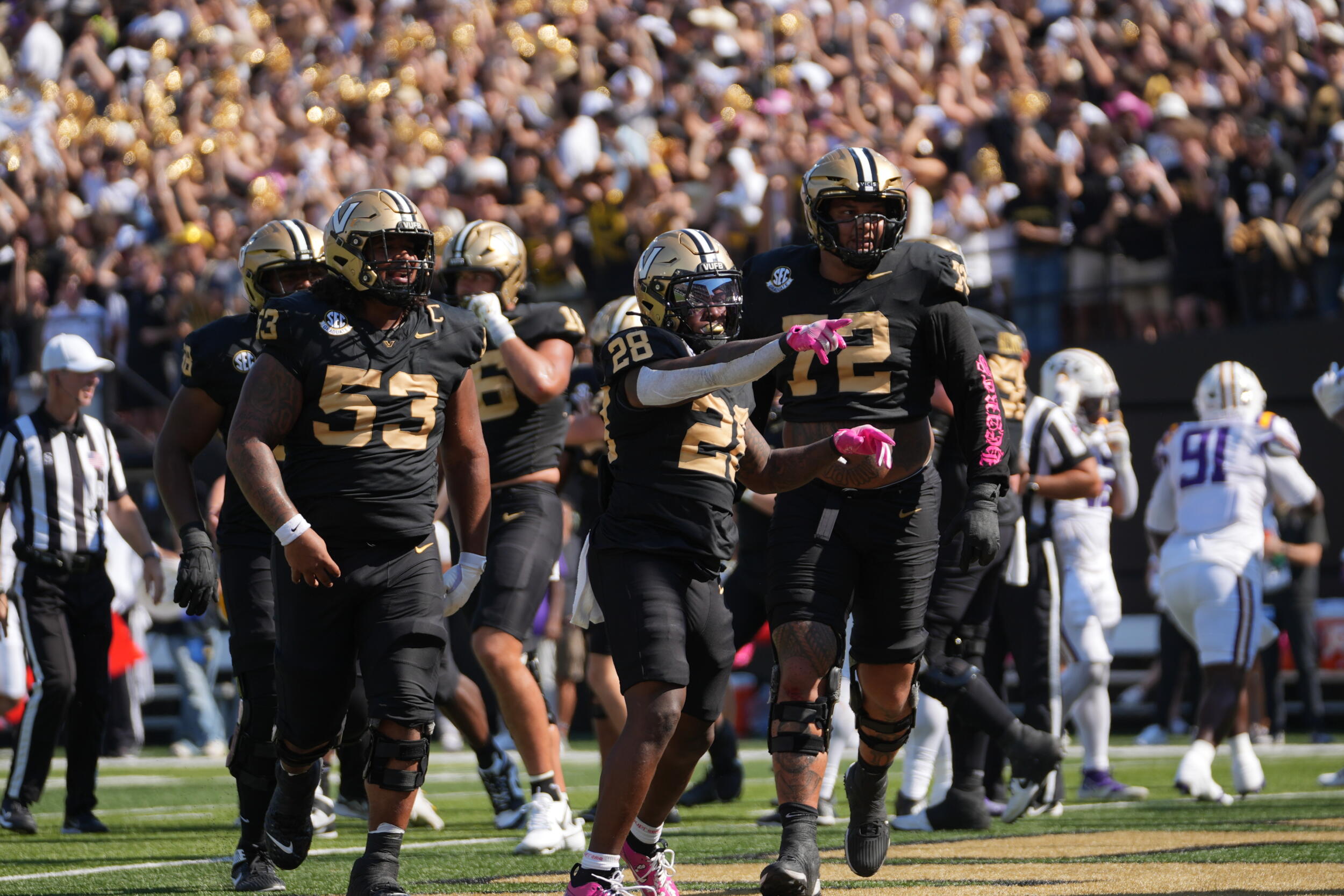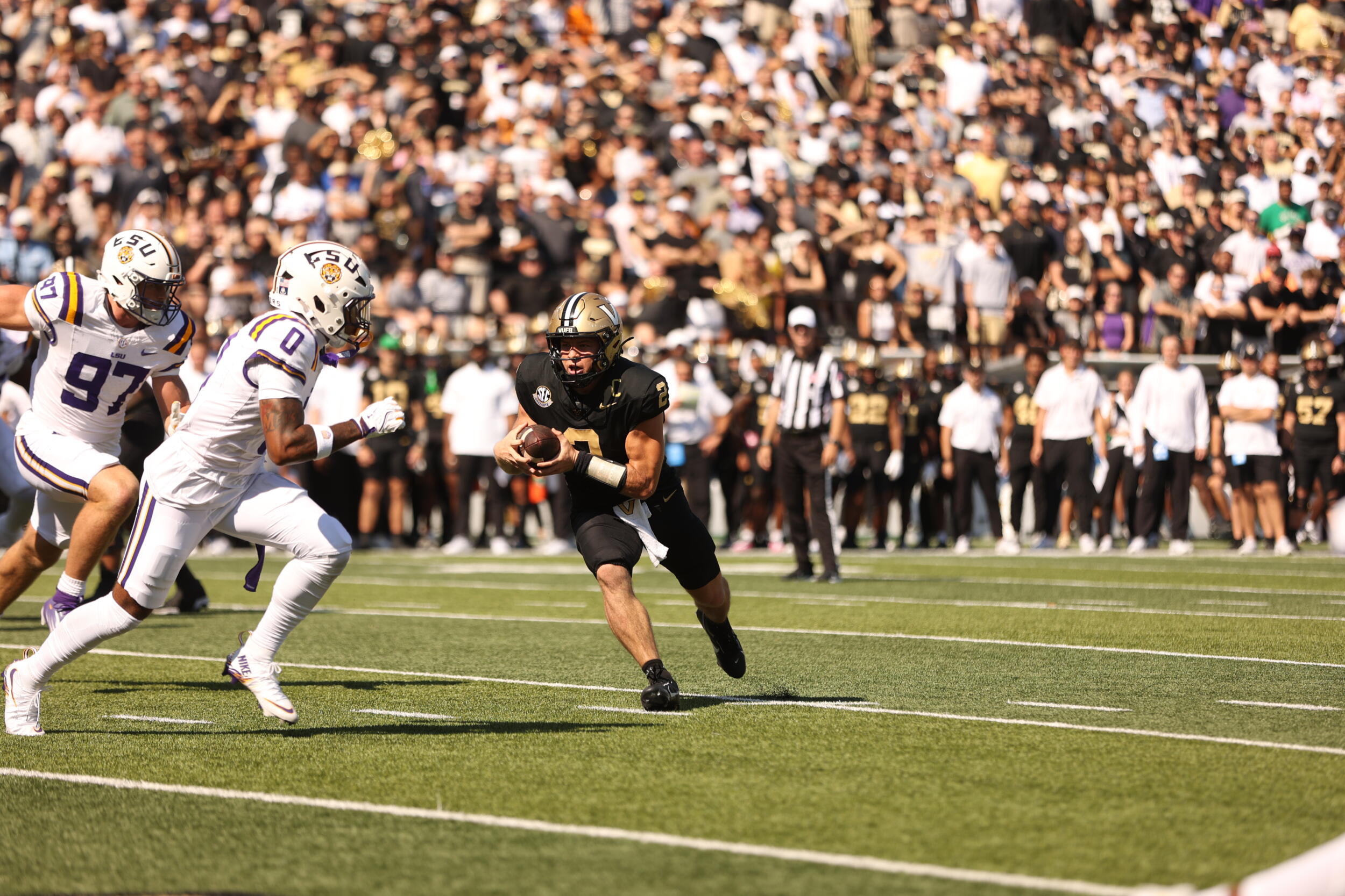 The Vanderbilt defense rose to the occasion on LSU’s final three possessions. After LSU drilled a 23-yard field goal to make it 31-24, the Commodores forced back-to-back three-and-outs to regain possession with 3:12 remaining in the game. Makhilyn Young’s 43-yard dash on the first play after the Tiger punt put Vanderbilt at the LSU 15-yard line, and the Dores were able to run the clock out from there to secure the seven-point victory.