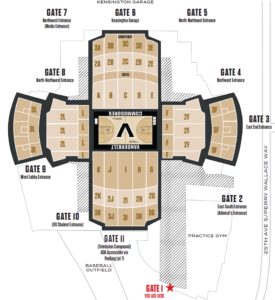 Parking Garages will open for basketball parking two hours prior to tip, with gates opening 1 hour prior to tip. | Parking Map